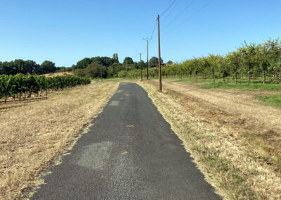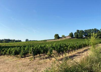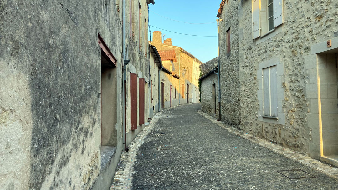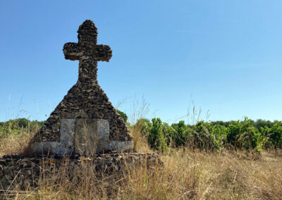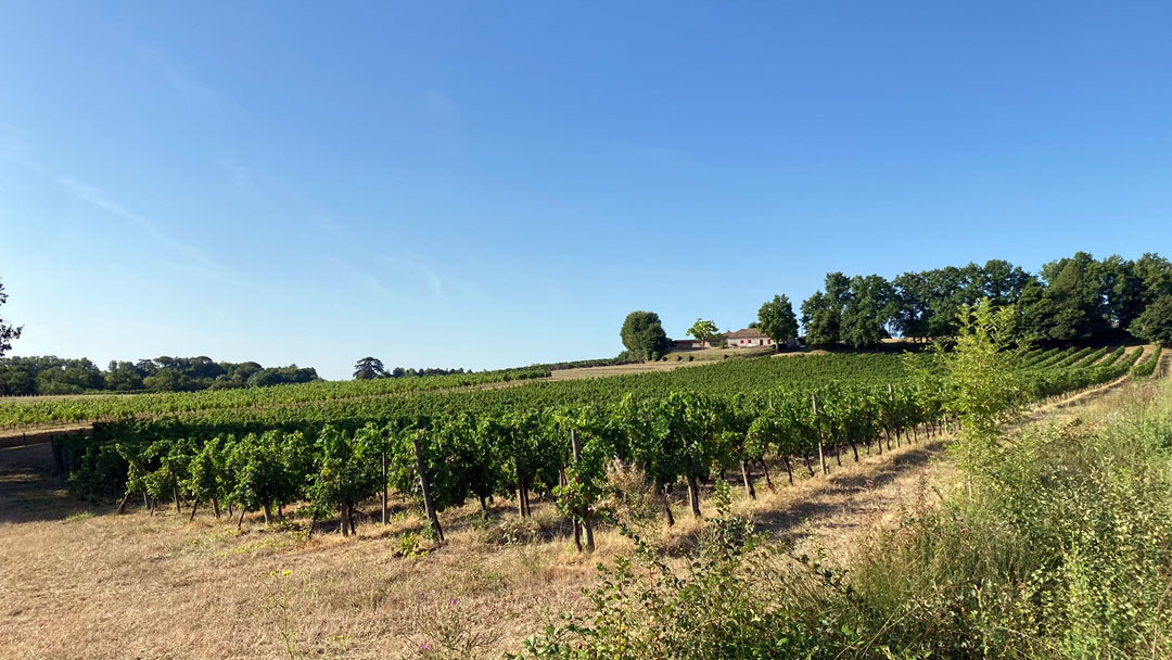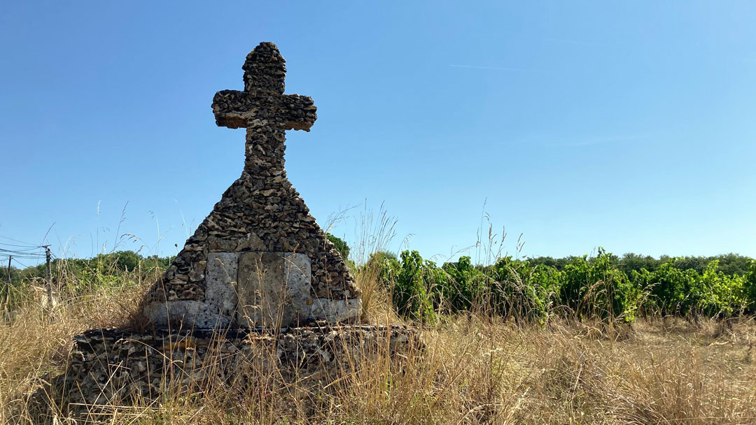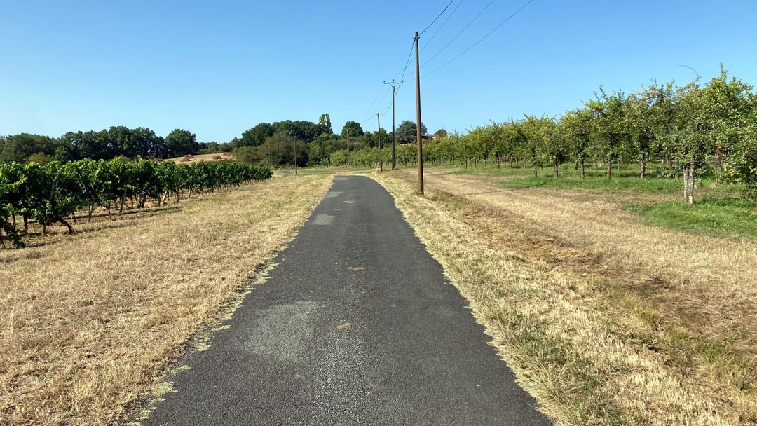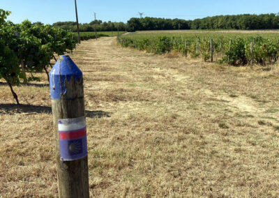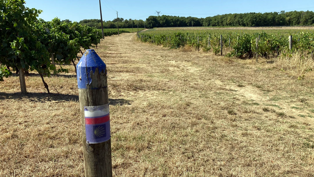 Hinter Sainte-Foy ging es gleich wieder in die Weinberge, kaum ein Schatten in Sicht. Mittags war das Wasser in meinen Flaschen so warm, dass es eher als grüner Tee durchgegangen wäre. Kein Restaurant, kein Café – nur Bananen und trockenes Brot aus dem Rucksack, meine kleine Pilgerverpflegung.