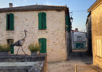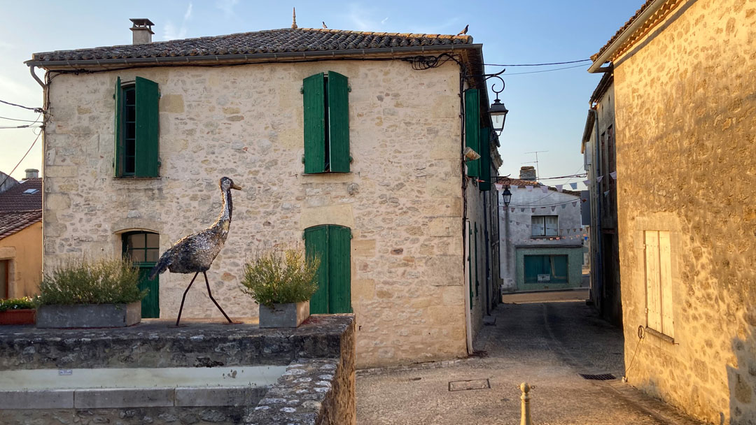 Am späten Nachmittag erreichte ich Pellegrue, die Temperatur bereits bei 35°C. Ein halber Liter frisch gezapftes Bier an der Bar am Marktplatz half, die Hitze ein wenig zu vergessen. Danach einkaufen und in die Pilgerherberge eingecheckt – und zu meiner großen Freude traf ich Jolanda wieder.