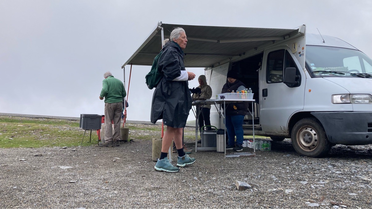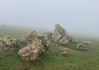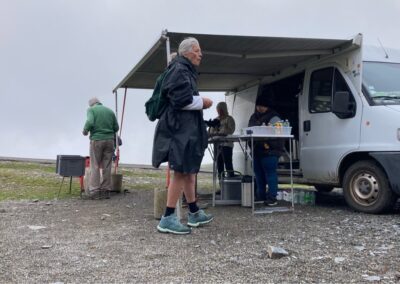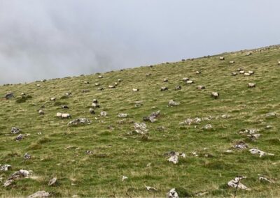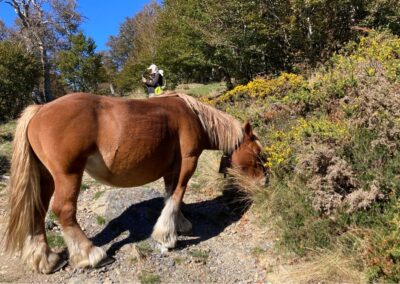 Und das wurde es auch. Unterwegs viele interessante Begegnungen: Allen aus Australien, Richard aus Kalifornien, Kati aus Chicago, Brigitta und Sophia aus Budapest, Yüang aus Berlin, Selina aus Gießen und noch einige mehr. Der Austausch mit diesen Menschen, ihre Geschichten und die geteilte Anstrengung des Weges machten den Tag zu einem besonderen Erlebnis. Nicht weniger interessant waren auch die Tiere am Weg. Pferde mit Kuhglocken, Ziegen, Schafe und einige Raubvögel.
