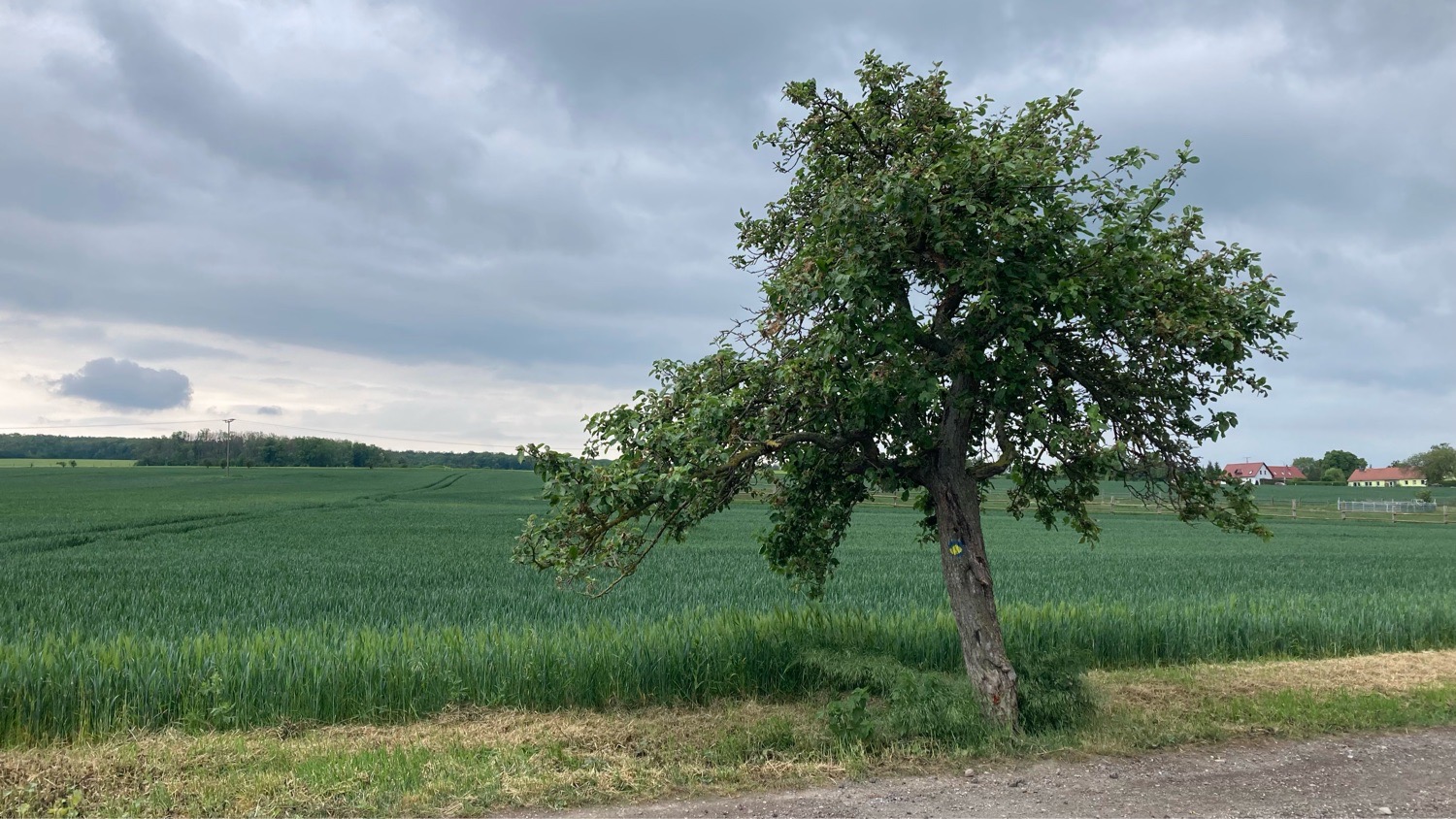 Der 17. Tag meiner Wanderung verlief ohne besondere Ereignisse. Schon früh am Morgen machten sich große, dunkle Wolkenformationen am Himmel bemerkbar, doch zum Glück blieb ich vom Regen weitestgehend verschont. Trotz der drohenden Wolken konnte ich zügig vorankommen. Mancherorts nahm ich Abkürzungen über Landstraßen, die meinen Weg erheblich verkürzten, und überquerte notgedrungen eine ICE-Trasse.