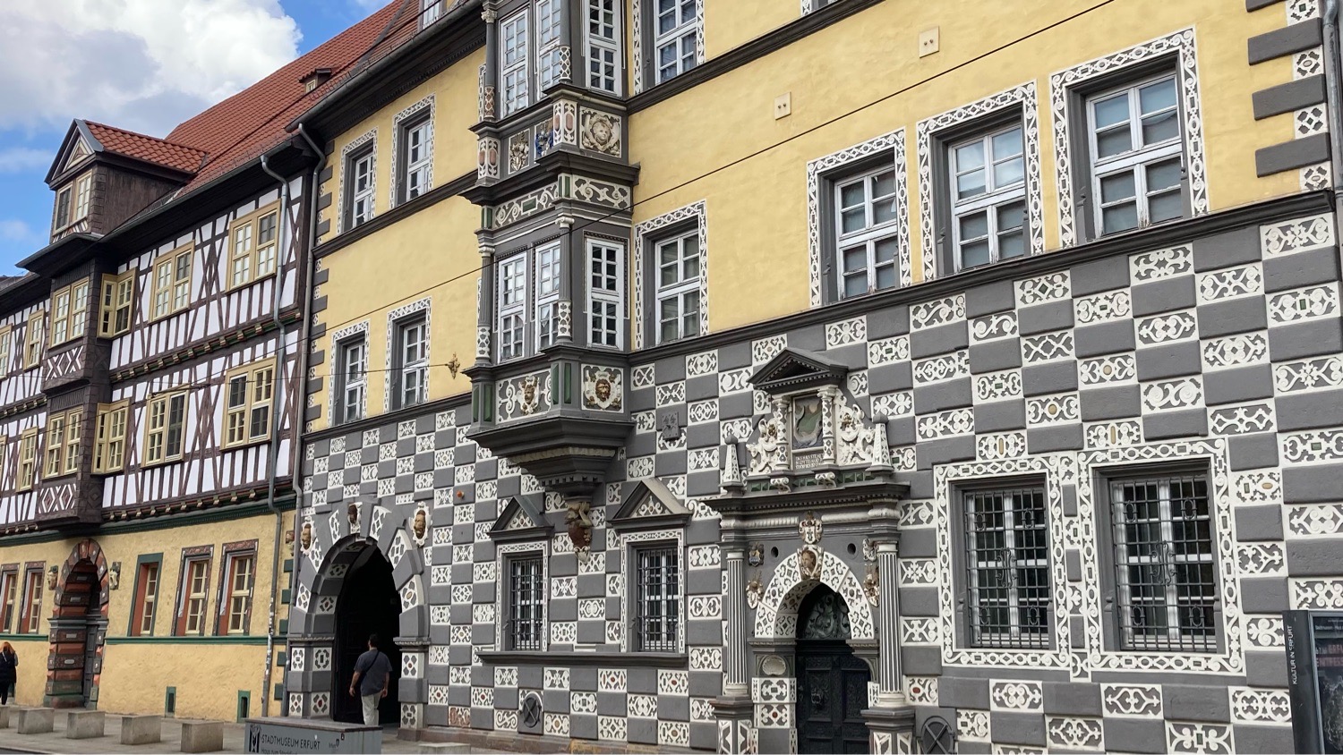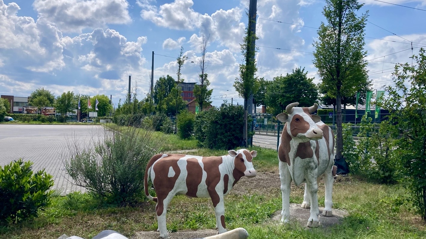 Das erste, was mir in Erfurt auffiel, waren die glücklichen Kühe der Firma Ostermann. Diese Begegnung bot einen angenehmen Kontrast zu den sonst eher urbanen Eindrücken, die ich kurz darauf sammeln würde. Es war Pfingstsonntag, und je näher ich dem Stadtzentrum kam, desto voller wurden die Straßen. Menschenmengen bevölkerten die Gassen, und eine lebendige Atmosphäre empfing mich. Die Düfte von Thüringer Bratwurst und Döner überlagerten sich und vermittelten ein Gefühl von vertraulicher Gemütlichkeit.