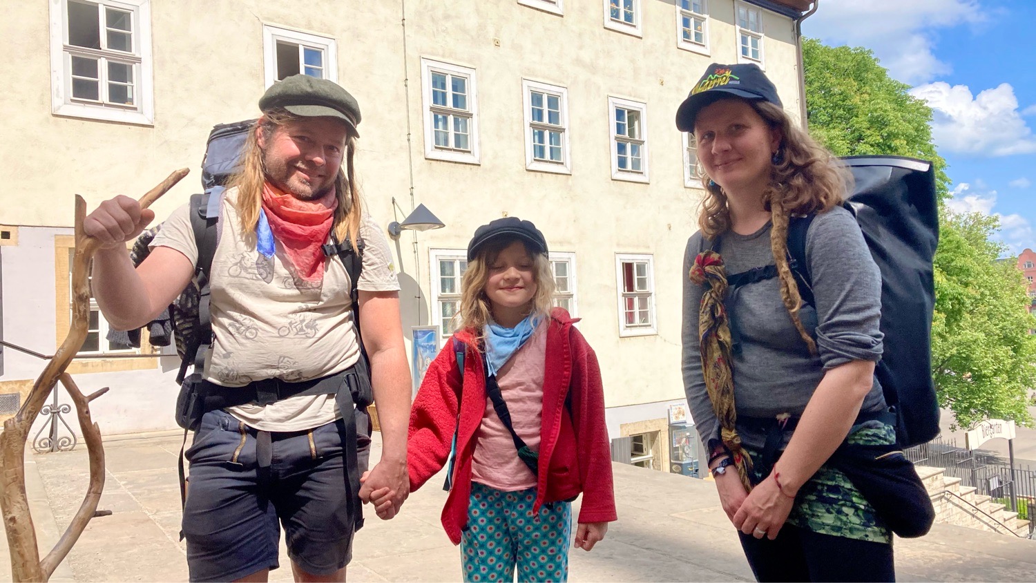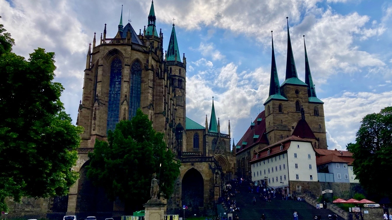 Wir haben uns in der Herberge Eckartsberga kennen gelernt und hier Pfingstmontag vor dem Erfurter Dom wieder getroffen. 😁
