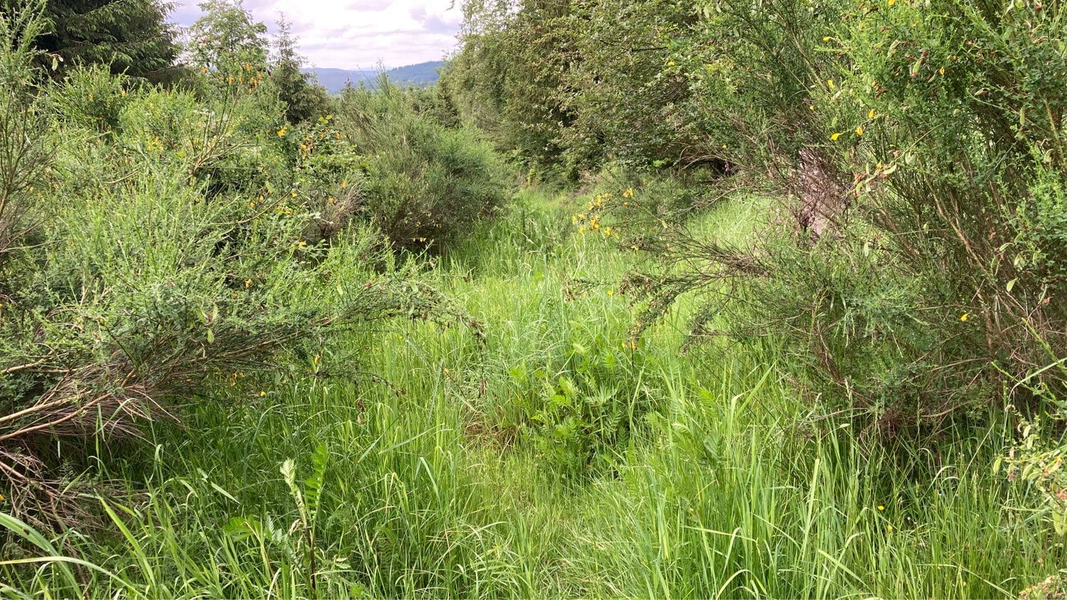 Schon bald führte mich mein Weg auf einen Schotterpfad, dessen unebene Oberfläche die Durchblutung in meinen Füßen angenehm anregte. Weiter ging es durch meterhohes Gras, das sanft gegen meine Beine streifte, als ich mich meinen Weg bahnte. Schließlich fand ich mich auf schmalen Waldpfaden wieder, die scheinbar nur von Wildschweinen genutzt wurden. Der Tag war kühl und windig, der Himmel wolkenverhangen und es sah jederzeit nach Regen aus, doch das trug nur zur Abenteuerlust bei.