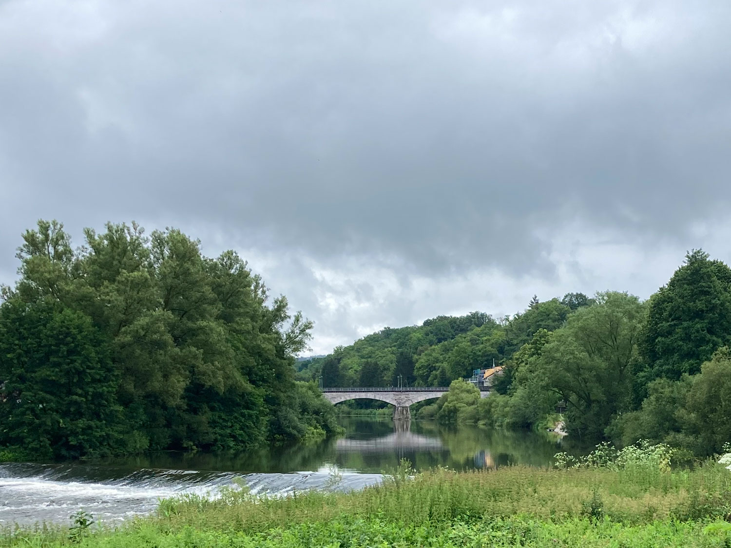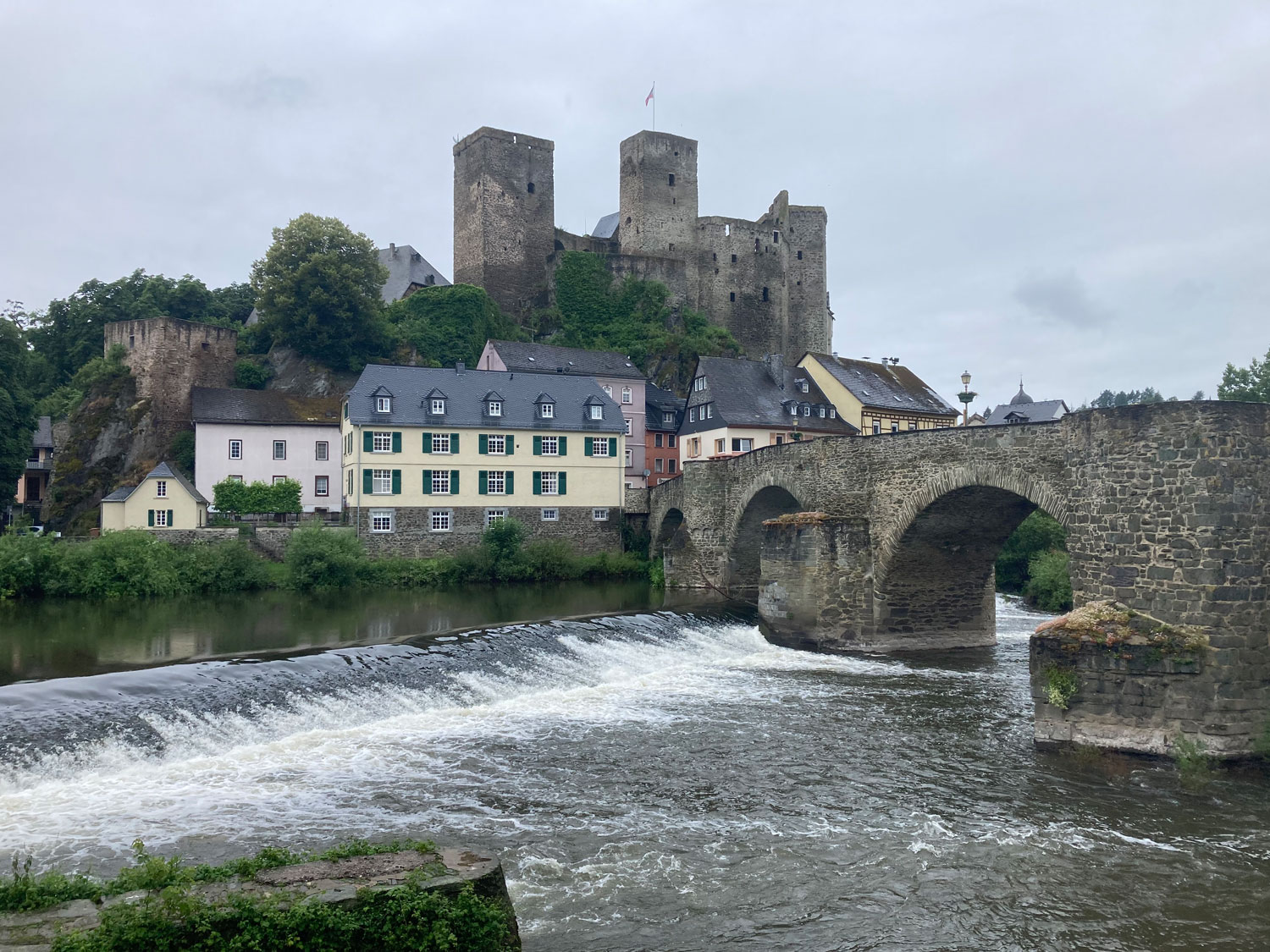 Nach fünf Kilometern und fast zwei Stunden mühsamen Marschierens erreichte ich den Ort Runkel. Meine Frustration über den nassen, anstrengenden Weg musste ich irgendwie loswerden. Ein Kaffee war der erste Schritt zur Beruhigung. Danach gönnte ich mir ein Eis, um die Laune weiter zu heben. Schließlich fand ich mich in einem Restaurant wieder, wo ich ein leckeres Mittagessen und ein kaltes Bier genoss. Die Gespräche mit den netten Menschen, die ich traf, ließen die Zeit wie im Flug vergehen.