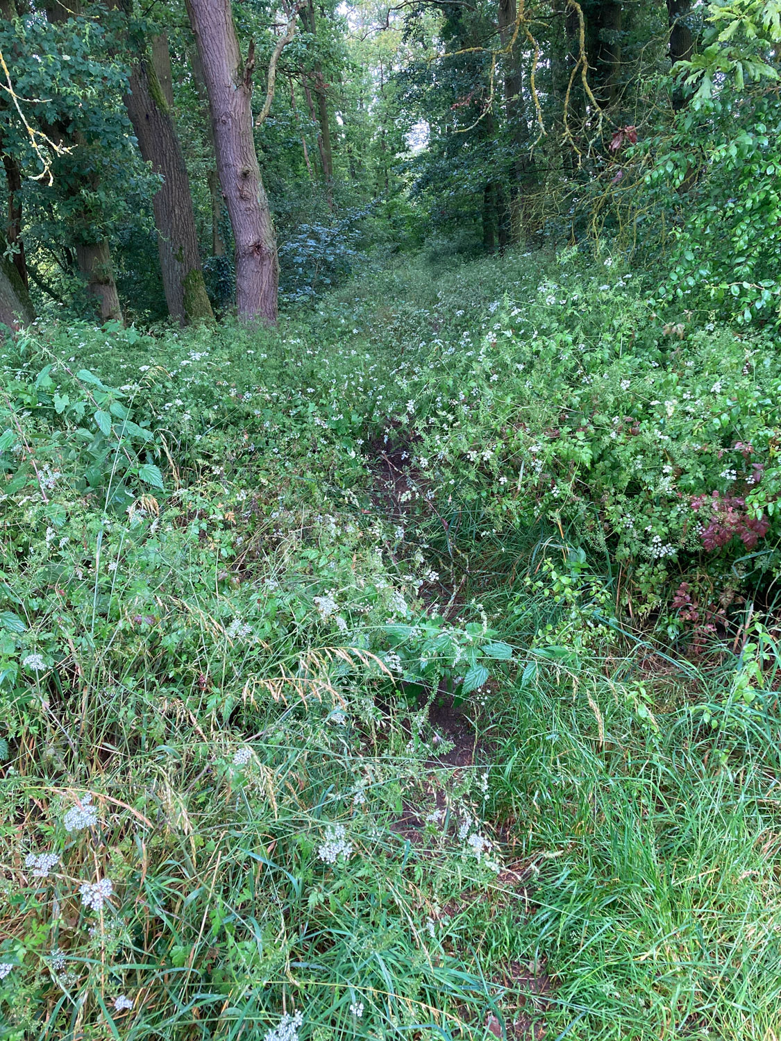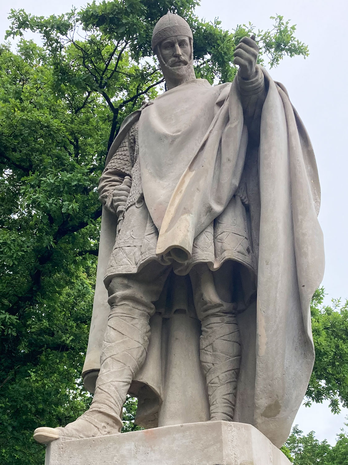 Als der Regen endlich nachließ, konnte ich mich schwer aufraffen, aber der Jakobsweg wartete nicht. Widerwillig machte ich mich auf den Weg. Der Weg führte mich vorbei am Marmor-Museum und dann weiter über schmale, überwucherte Trampelpfade hinauf zum Denkmal. Schon nach kurzer Zeit war ich von Kopf bis Fuß durchnässt, nicht wegen des Regens, sondern wegen der Pflanzen, die den Pfad überwucherten. Eine Machete wäre heute wirklich hilfreich gewesen, um mir den Weg freizulegen.