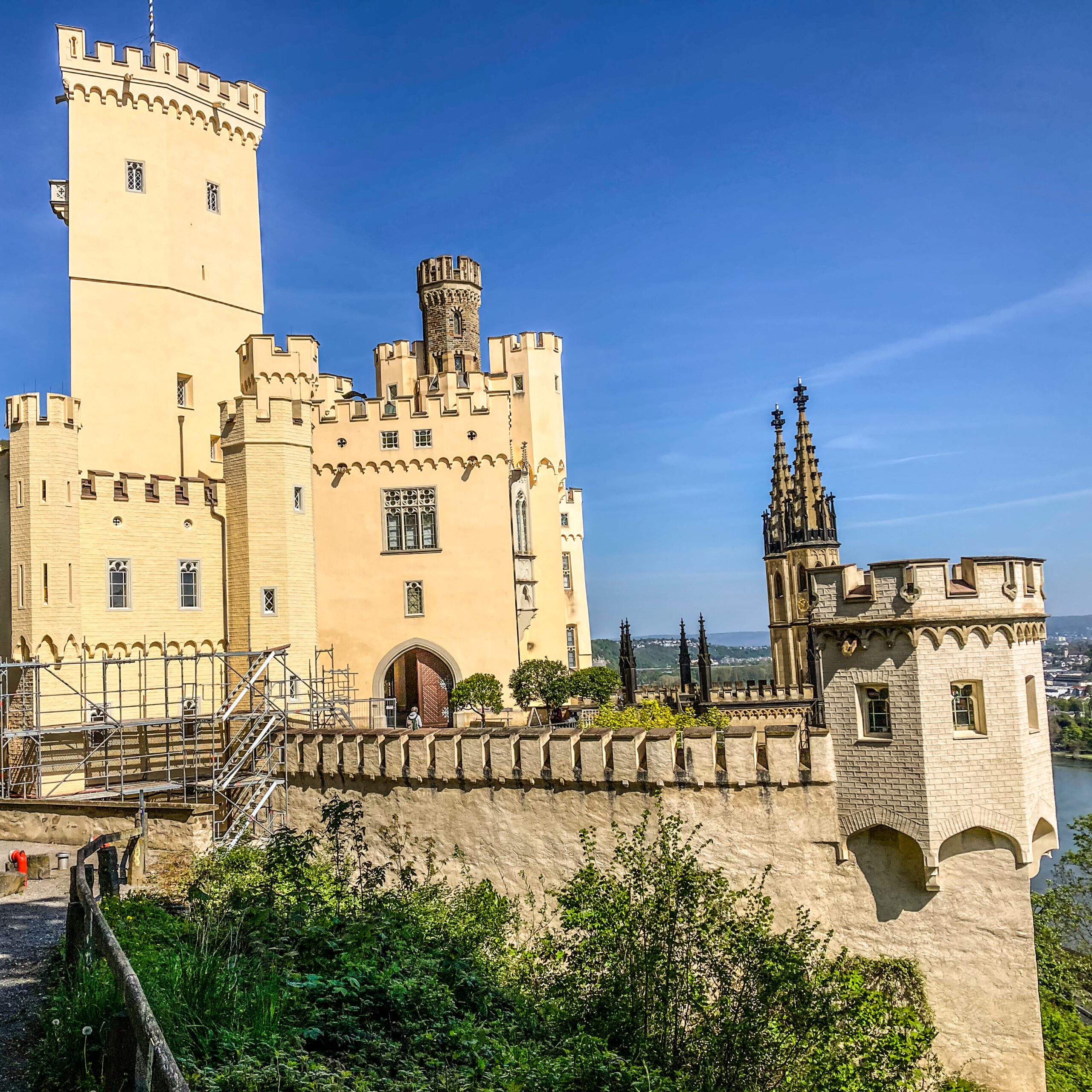 Nachdem ich über Nacht mit dem Zug von Berlin nach Niederlahnstein angereist war, begann ich gleich am frühen Morgen die erste Etappe auf dem Mosel Camino. Die Reise startete entlang des Rheins, und ich musste die imposante Eisenbahnbrücke überqueren. Doch bereits zu Beginn stieß ich auf eine unerwartete Hürde: Aufgrund der Gefahrenlage auf dem schmalen Radweg beschloss ich, für etwa zwei Kilometer bis nach Stolzenfels den Bus zu nehmen.