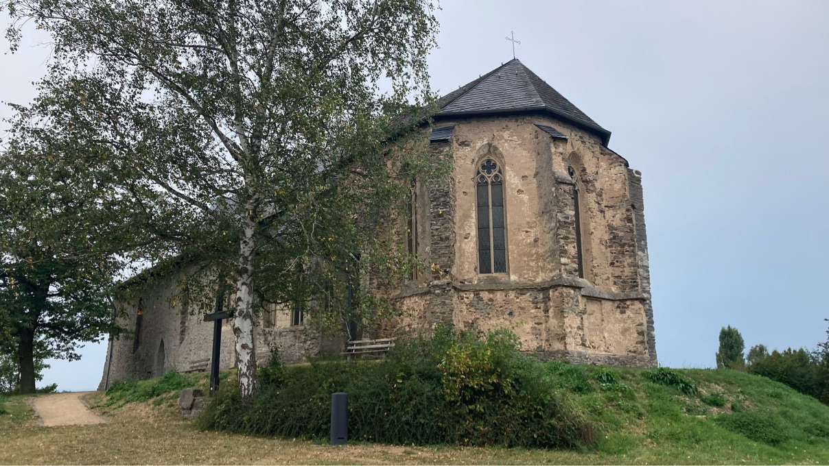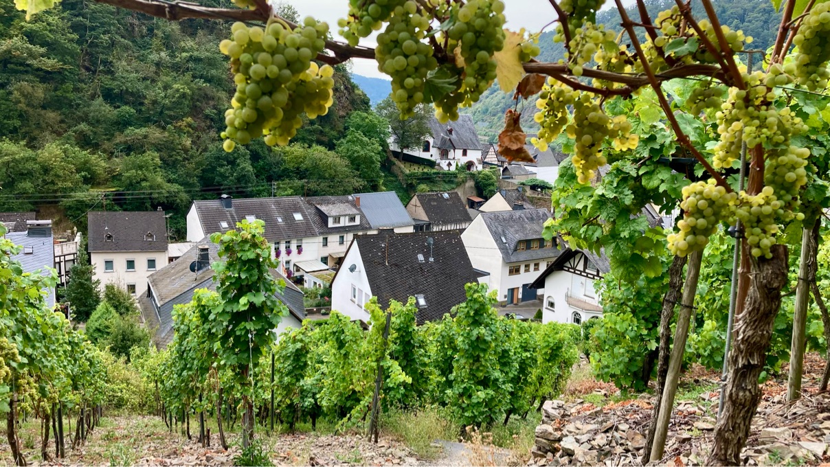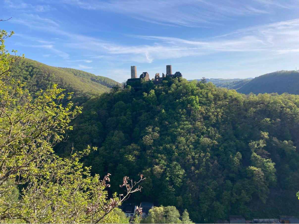 Als ein Gewitter aufzog, war ich gerade am Sendemast vorbei und stand vor dem Autobahnrastplatz Mosel Auge in Auge mit der anderen Art. Nach kurzer Überlegung entschied ich mich, im Wald Schutz zu suchen. Der Wind schob die dunklen Wolken in die Ferne, und bald brach die Sonne wieder durch die Baumkronen. Das war ein Glück, denn der Abstieg zu meinem Etappenziel in Alken war steil und anspruchsvoll, und Regen hätte die Situation nur verschlimmert.