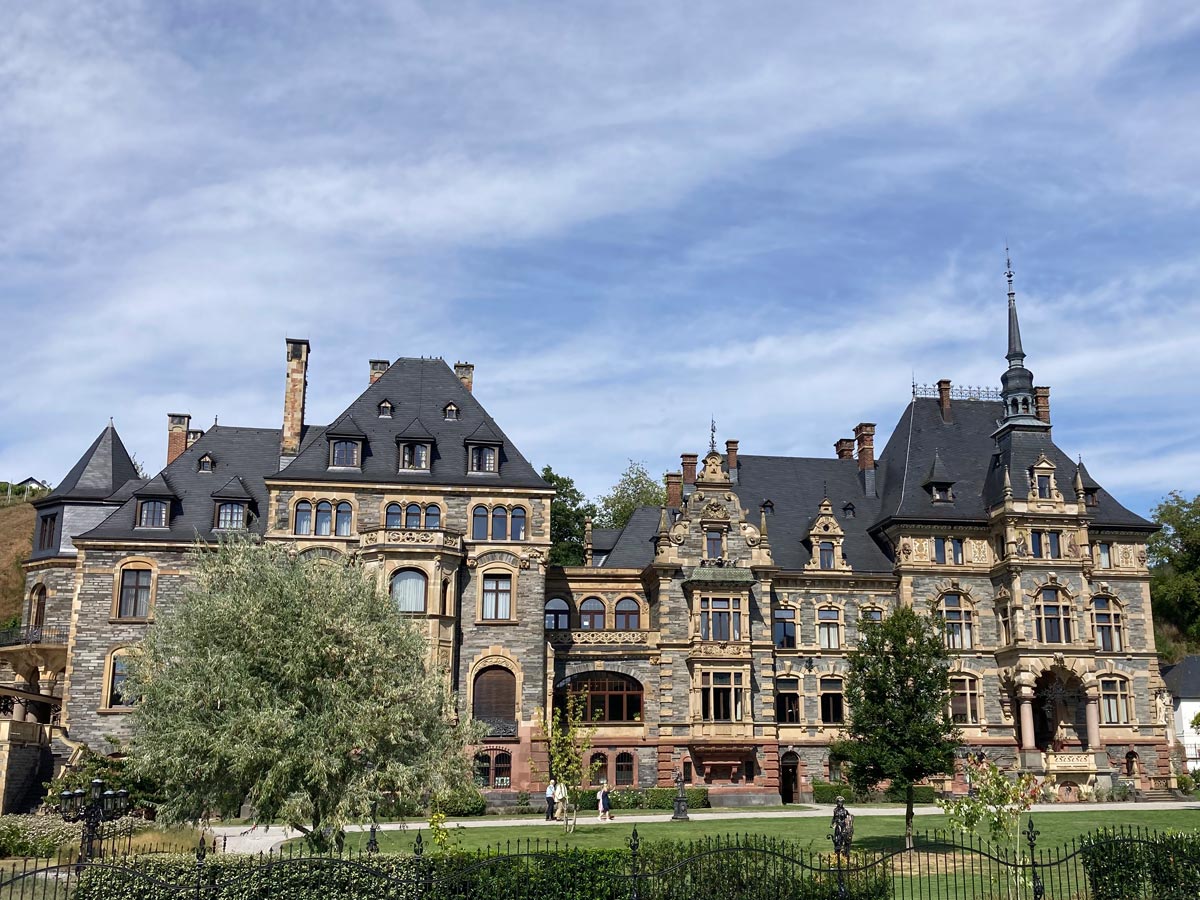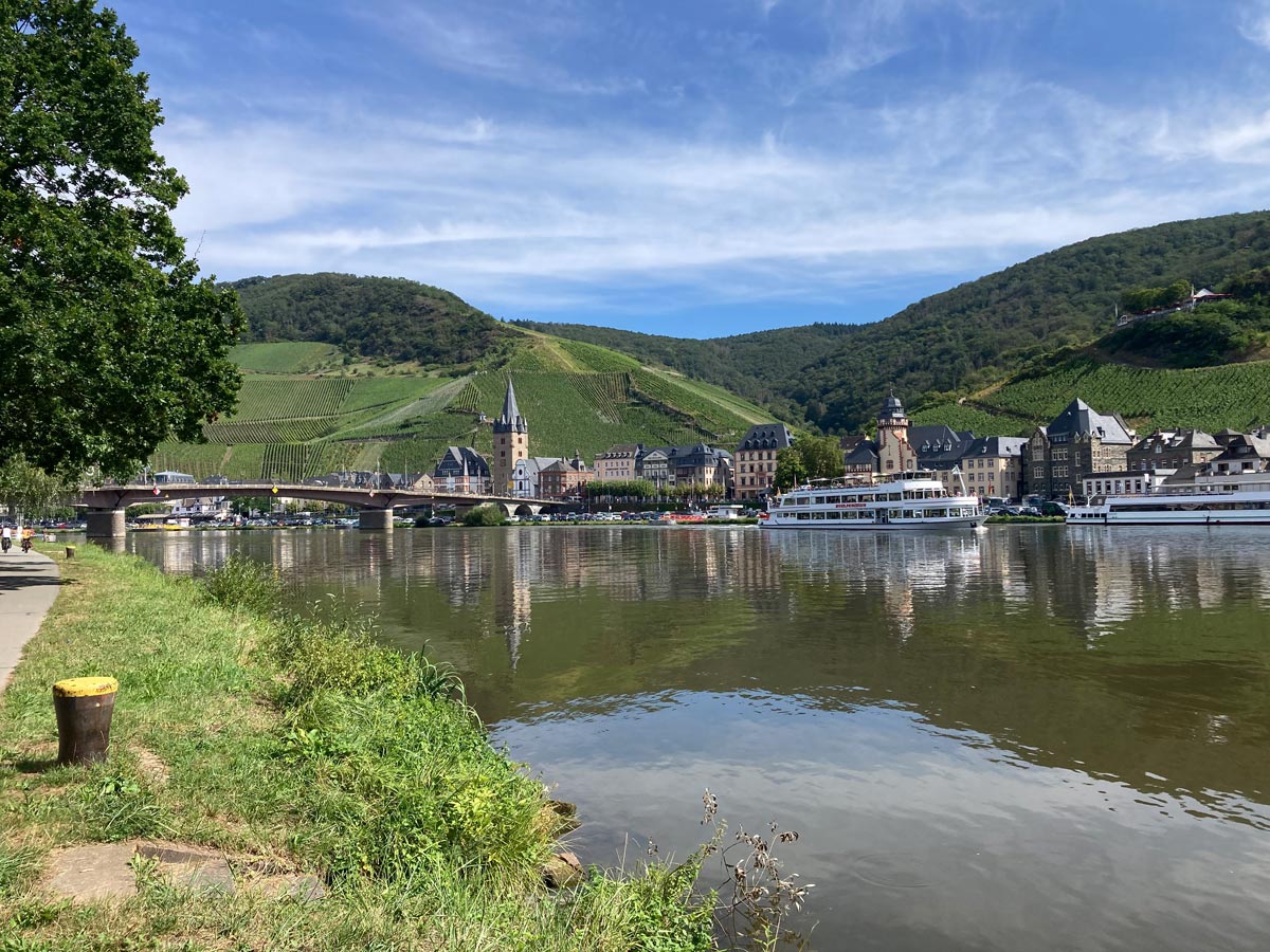 Nach einer kurzen Erkundungstour durch die Gassen und einer erfrischenden Weinschorle verabschiedete ich mich von Bernkastel-Kues und wanderte entlang der Mosel weiter in Richtung Lieser. Der Weg führte mich über mehrere Kilometer parallel zu einer stark befahrenen Straße, mit der Mosel zur Linken und den majestätischen Weinbergen zur Rechten. Trotz der Hektik der Straße gab es entlang des Weges einiges zu entdecken: das imposante Schloss Lieser und eine römische Kelteranlage, die einen Einblick in die jahrtausendealte Weinkultur der Region boten.