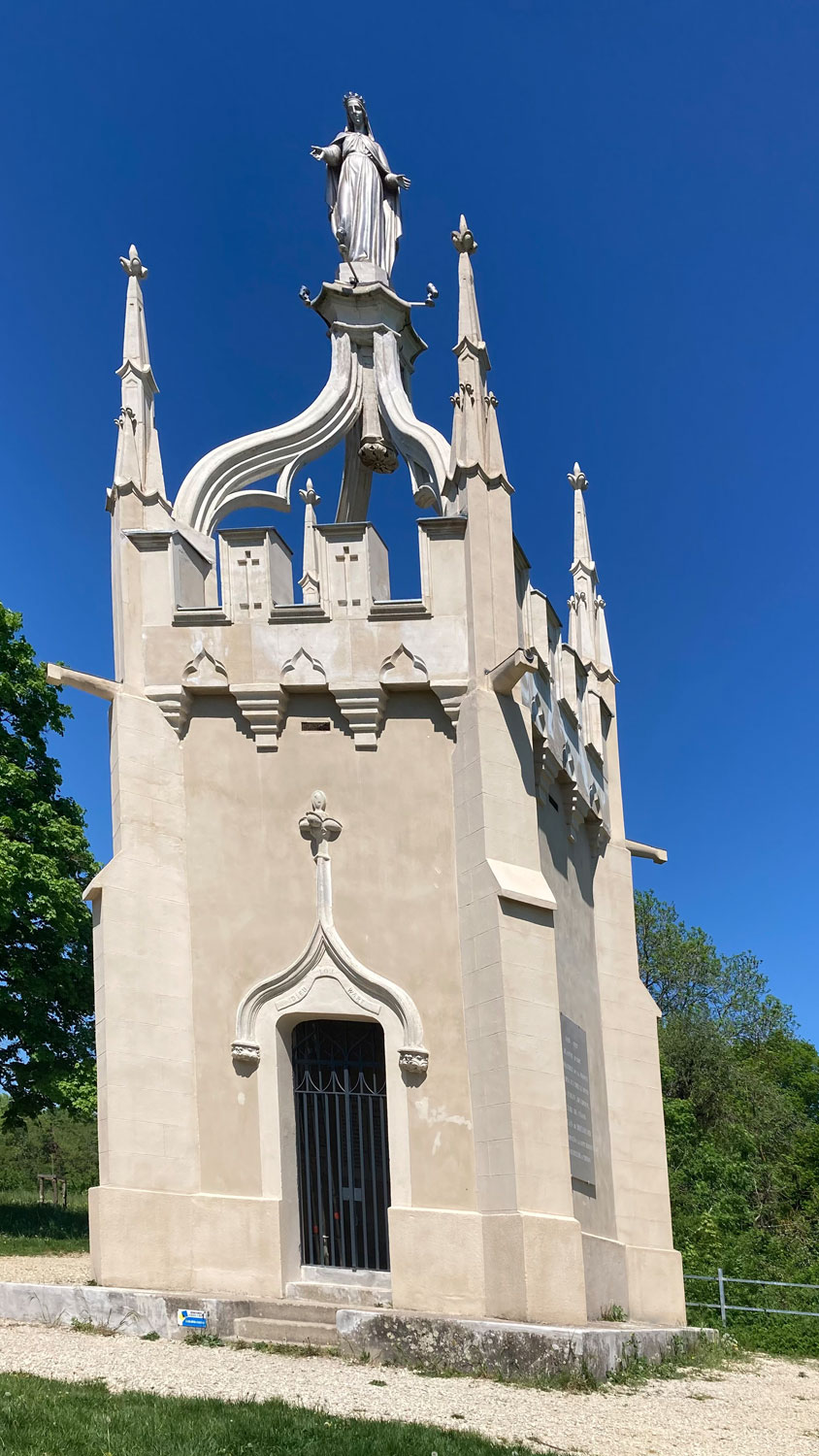 Kurz vor dem Ort Dieulouard, der einst eine Festung oberhalb der Mosel war, stieß ich auf das Denkmal “Notre-Dame des Airs” – ein stiller Ort der Erinnerung an den Ersten Weltkrieg, der in der offenen Landschaft fast surreal wirkte.