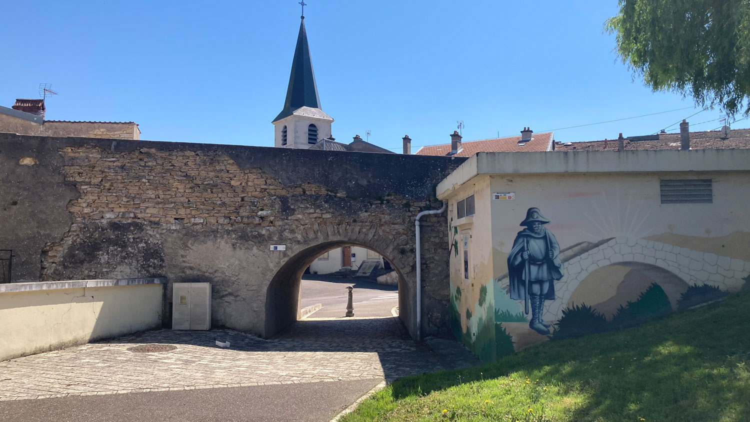 In Dieulouard selbst überraschte mich ein großes Wandbild mit Jakobspilger – ein Zeichen der Verbundenheit mit dem Jakobsweg, das mich irgendwie berührte. Es erinnerte mich daran, wie viele Menschen hier schon unterwegs waren, aus ganz unterschiedlichen Gründen.