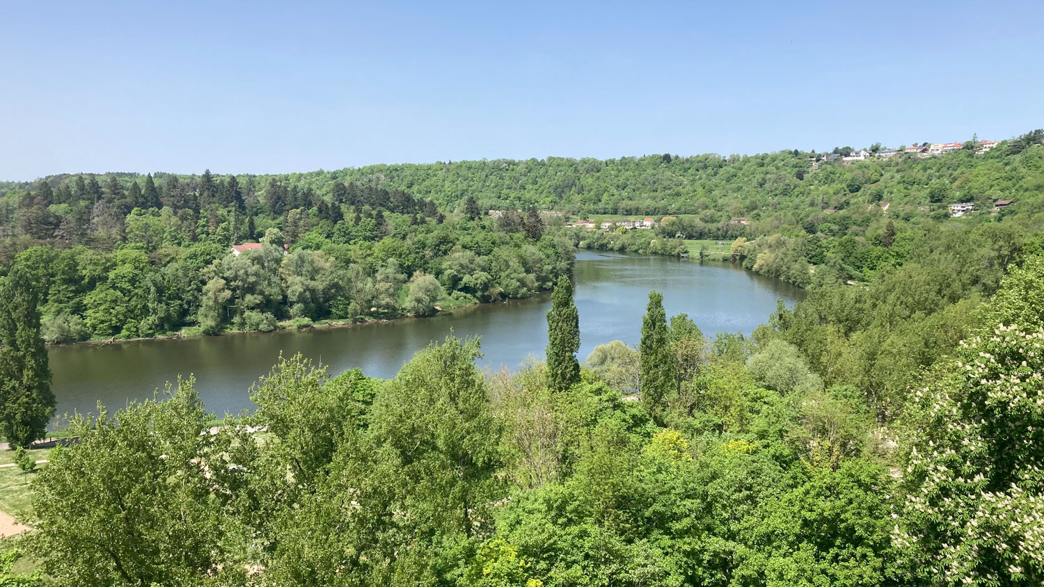 Gegen 19:00 Uhr erreichte ich endlich Liverdun. Der Ort selbst liegt imposant oben auf einem Berg, mit einem großartigen Blick auf die Moselschleife. Mein Ziel lag allerdings tiefer – direkt am Wasser: der Campingplatz. Als ich die Rezeption betrat, bestellte ich mir erst mal ein halbes Liter Bier – verdient ist verdient. Die Dame hinter der Theke sprach mich prompt auf Kölsch an. Sie kam einst aus Düsseldorf nach Frankreich – der Liebe wegen – und betreibt heute diesen wunderbar gelegenen Platz.