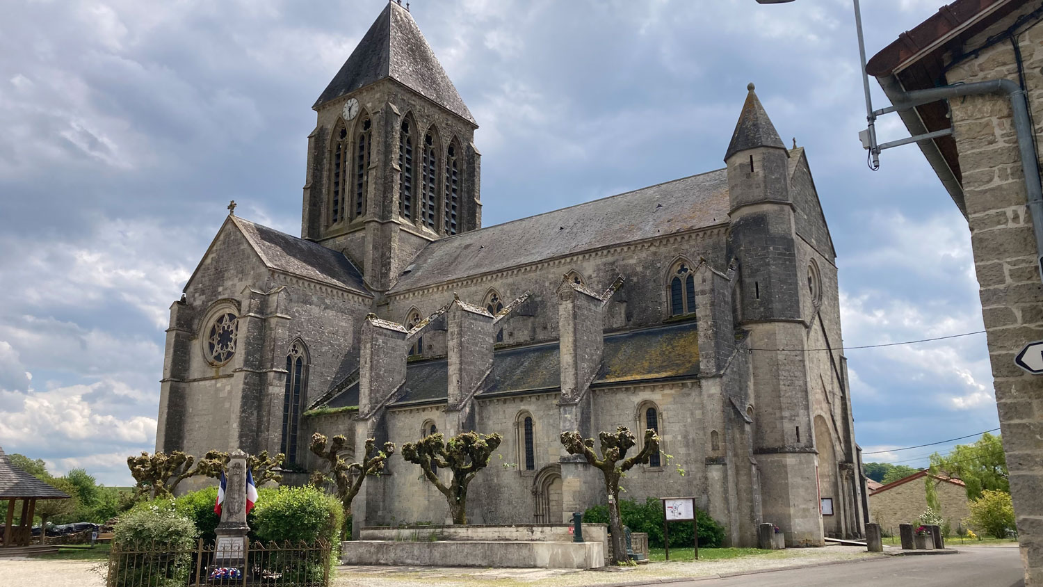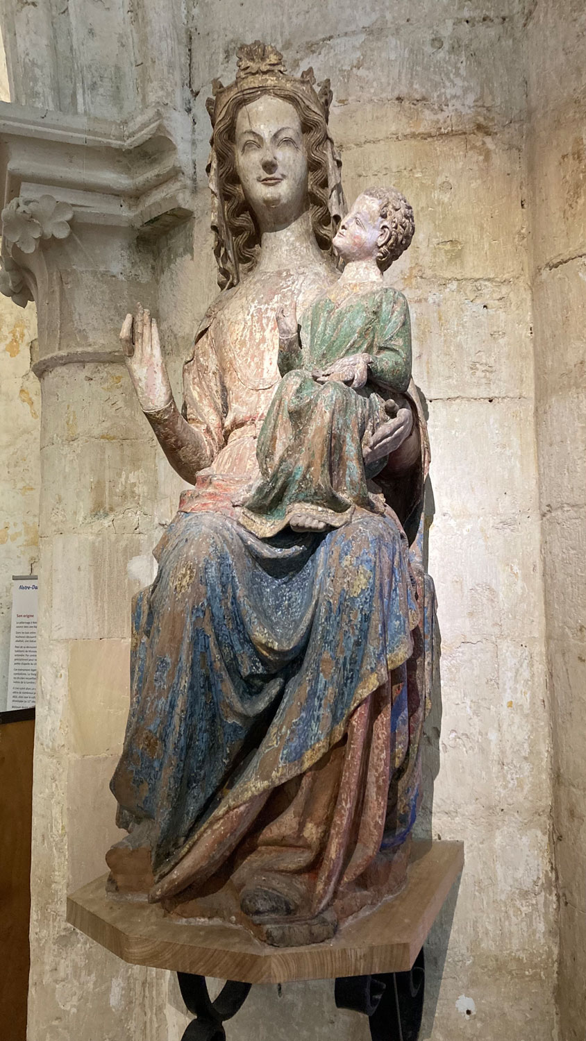 Nach etwa 10 Kilometern erreichte ich Blécourt, das auf einem Hügel thront. Was mich dort erwartete, hätte ich nie vermutet: eine gewaltige Kirche – Notre-Dame de Blécourt – in einem winzigen Ort mit kaum 120 Einwohnern. Ob dies ein Wallfahrtsort ist, weiß ich nicht sicher, aber allein die imposante Größe der Kirche und eine wunderschöne, farbig bemalte Holzstatue der Jungfrau Maria mit Kind ließen mich staunen.