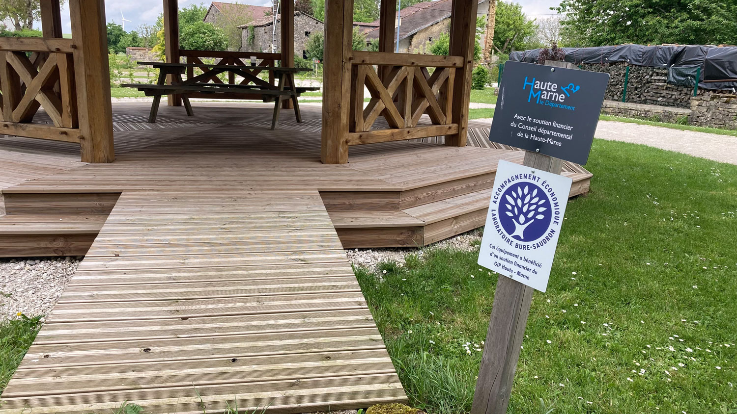 Vor der Kirche erwartete mich ein moderner Picknickplatz – ein Geschenk für erschöpfte Wanderer. Und wie so oft: Ein Hinweisschild, das mich schon seit Tagen begleitet, begrüßte mich wie ein vertrauter Weggefährte.