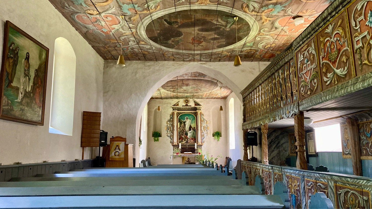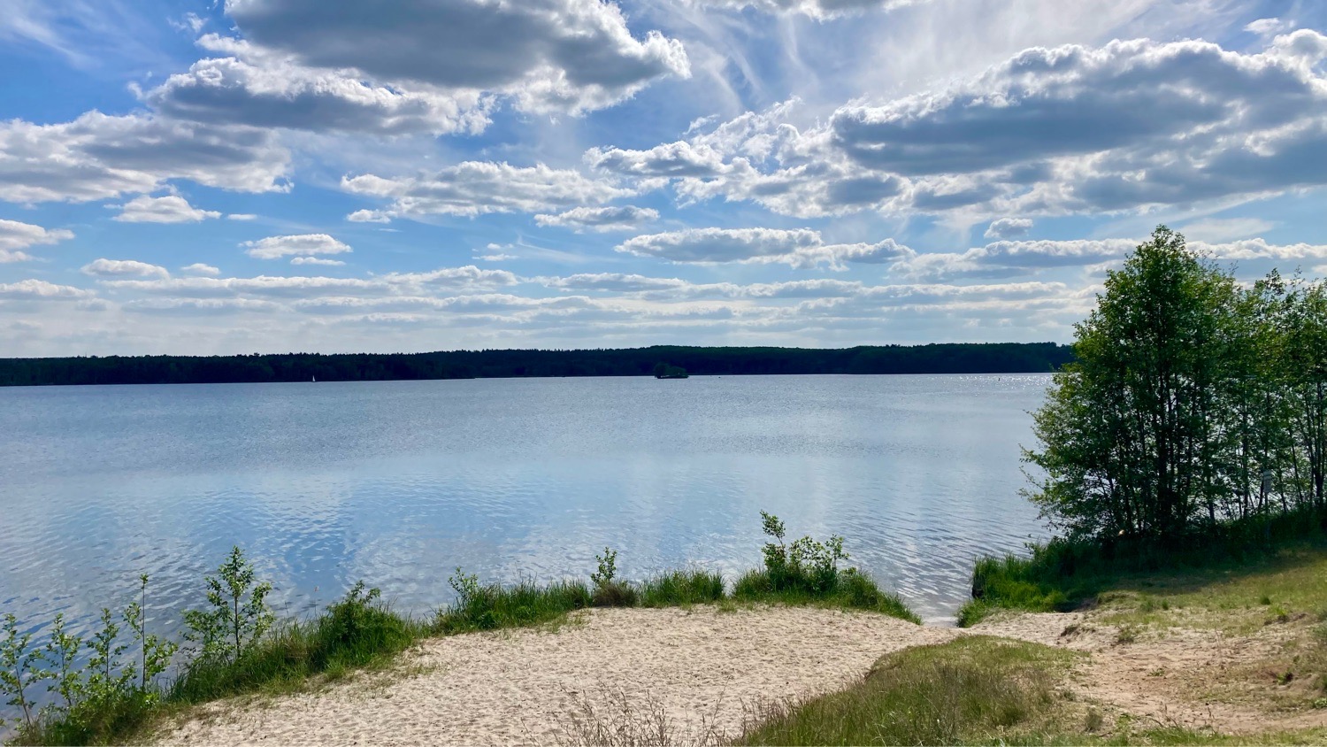 Angekommen an meiner Herberge im Garten der Evangelischen Kirche, war ich angenehm überrascht und glücklich über das Wohnfass im Garten. Küche und Bad sind im benachbarten Gemeindehaus. Ein Rundgang durch die Wehrkirche Bergwitz mit ihren barocken Deckenbildern, die freundlicherweise für mich geöffnet wurde, hinterließ einen bleibenden Eindruck. Zur Abenddämmerung machte ich mich auf den Weg ans Ufer des Sees, der einst ein Braunkohle-Revier gewesen war.