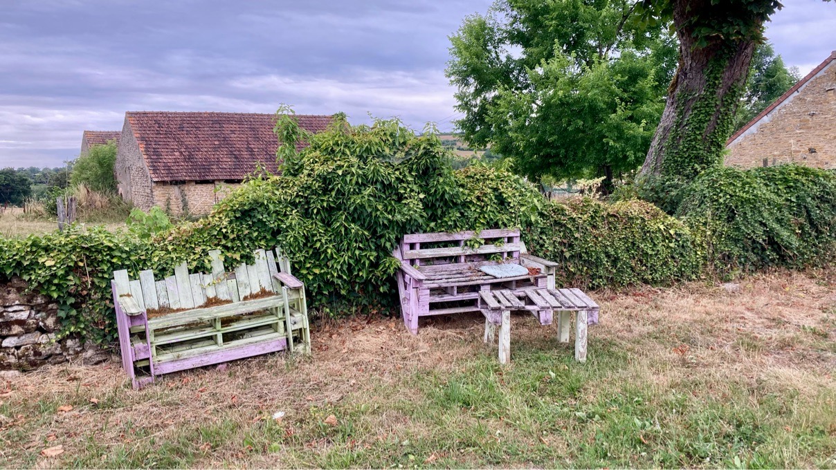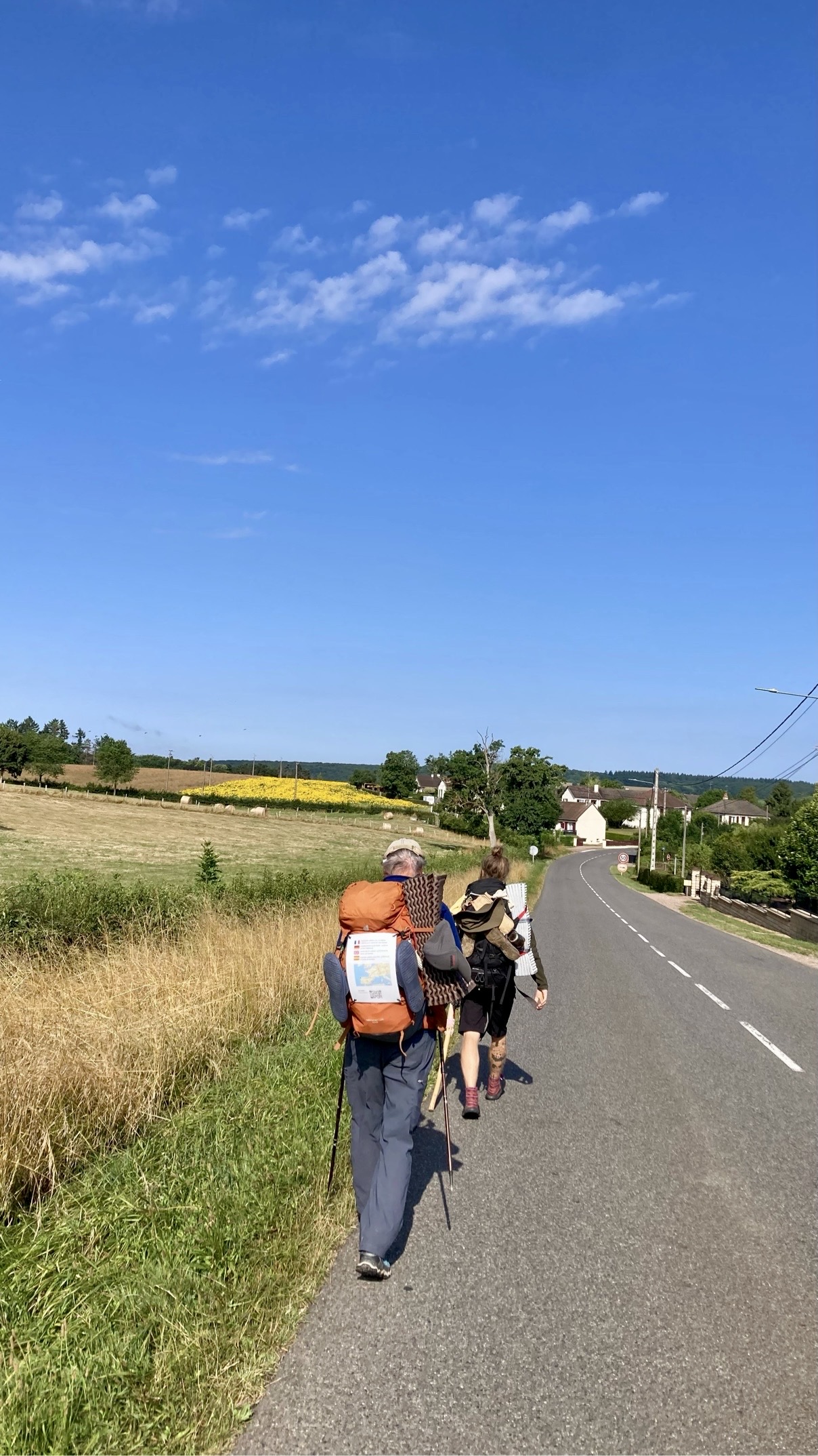 Mit der Sonne im Herzen (und endlich wieder am Himmel!) machten wir uns gemeinsam auf den Weg. Die Laune war gut, der Asphalt gnädig – zumindest für die ersten Kilometer. Im ersten Ort mit Supermarkt (diese heiligen Stätten moderner Pilgerfreude!) trennten sich unsere Wege. Wir verabredeten uns fürs Wiedersehen am Abend in Guérigny. Soweit der Plan. Doch Pilgerwege und Pläne – das ist wie Sandalen auf Schotter: es passt nie ganz.